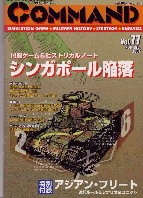 Wargame on the 1942 Malaya Campaign in Japanese. The theme is the invasion of the Malay peninsula by the Japanese army at the earliest stage of the Pacific War, and the player directs the Japanese army or the Commonwealth army of the United Kingdom, and aims to capture / defense the Malay peninsula. [...] Will the Japanese army occupy the Malay peninsula...