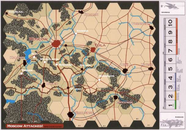 A hex-and-counter game covering this most decisive Russian Front battle, 30Sep41-31Jan42 in 8 semi-monthly turns at 20 miles - 32 kilometers - per hex and basically corps to army scale. Map scale is same as for SPI's now classic War in Europe. German operational intelligence limited by Russian maskirova/deception pieces. 4 especially strong panzer...