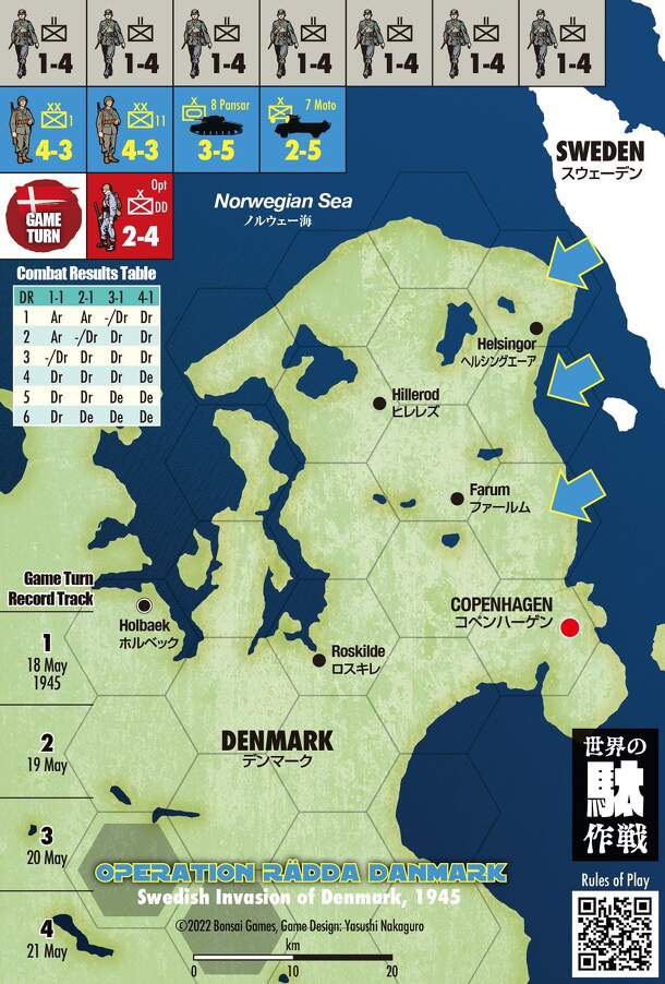 A postcard game distributed in BANZAI Magazine No. 14, first game of the irregular series "World Bad Strategy". The Swedish army, along with the Danish army, planned an operation to retake Denmark on May 18, 1945, but by then the war had ended with Germany's surrender. What if the plan is activated a little earlier than planned? Or what if the end of the...