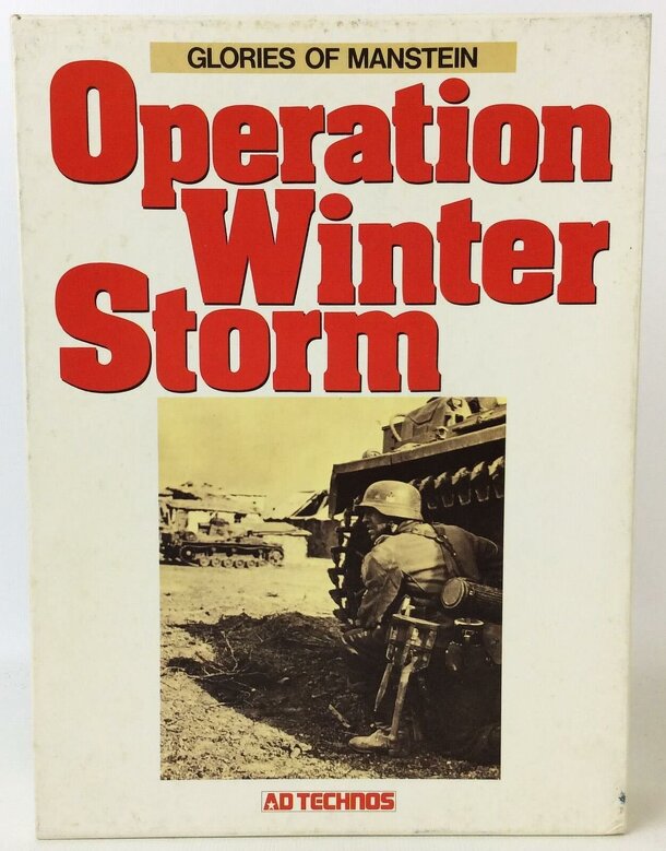 SGB-20 Op. Winter Storm (1986) (JPY 5,800) One mapsheet, 504 counters, two identical PACs, one 24-pg rule/scenario booklet (3 scenarios), and one Historical Softbound book entitled “Photographic Series of the East Front-Operation Winter Storm” (72-pg) (JPY 1,800). The historical softbound appears to have been available separately, but I have three copies...