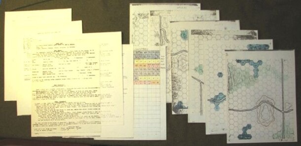 Move Out (1971, ADA, $1.50), by Tom Kaeter, simulates man-to-man combat in Western Europe in 1944. It pits all or part of an American infantry platoon (31 men, 31 counters) against a German platoon (32 men, 32 counters). Each side has one of five possible missions as they enter the board from opposite sides. Upside down placement and blank counters are...