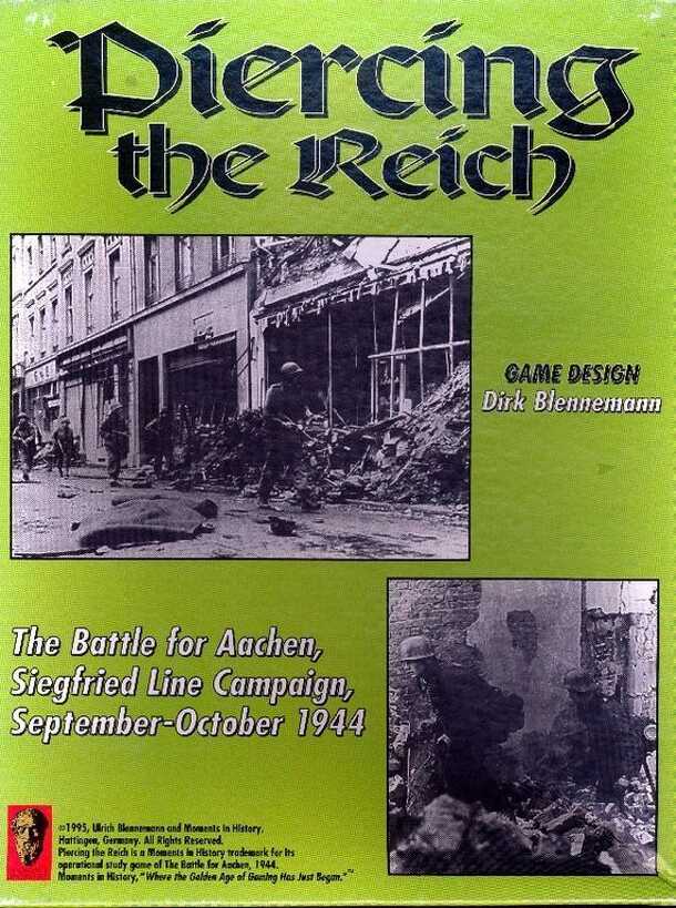 Piercing the Reich: The Battle for Aachen, Siegfried Line Campaign, Sep-Oct 1944 is an operational level simulation of the Battle of Aachen, 12 September to 21 October 1944. Piercing the Reich is modeled after a modified version of the popular Triumphant Fox: Rommel's Finest Hour – The Gazala Battles May-June 1942 gaming system, using an innovative...