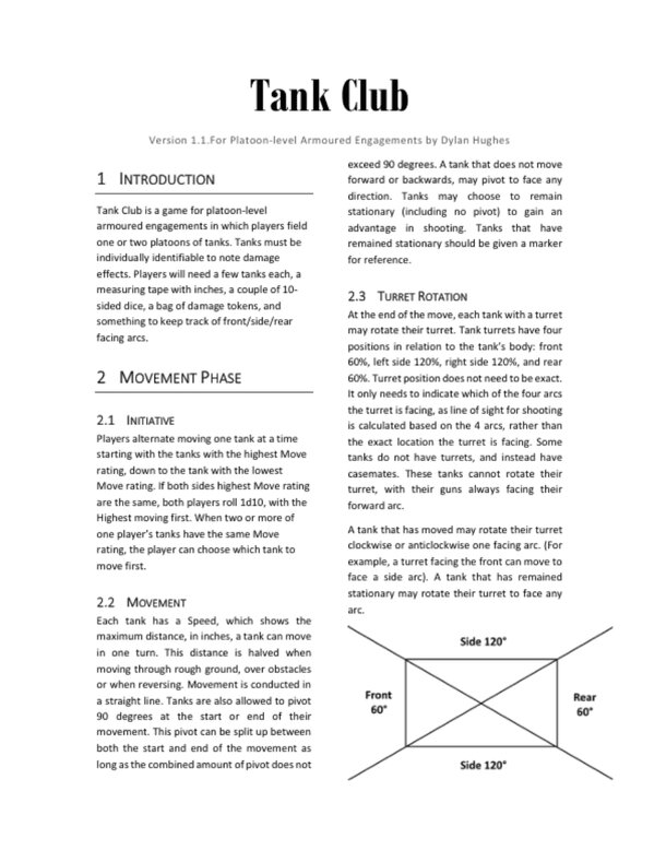 Tank Duel is an umpired, dual blind Tactical level miniatures wargame of a battle between two opposing tanks. Two four-player teams represent the opposing tank crews, portraying the commander, gunner, loader, and driver. From the rulebook: "The purpose of the game is to simulate, in a simple but realistic way, the problems confronting the crew of an...