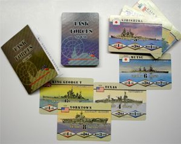 Task Forces at War is a really quick card game for two, pitting the Axis' and Allies' naval vessels against one another. Players secretly and simultaneously select three ships from their hand of five, then reveal the chosen three. Each ship has three combat values, namely aircraft, big guns, and torpedoes. If there are four or more aircraft carriers, then...