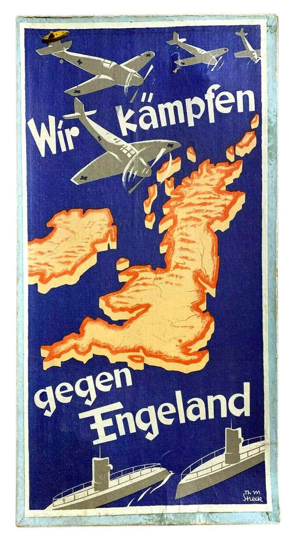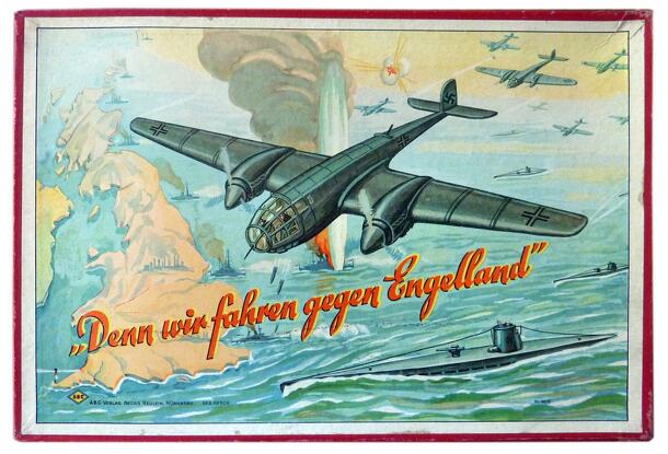 Three people take part in the game. Each player takes on a weapon type (submarine, bomber, fighter plane) in the form of a spinner and receives the corresponding 16 game pieces, which are used to show his successful hits by covering the ship and plane symbols of the attacking fleet on the board. The game is played in the order of submarine, bomber, fighter...