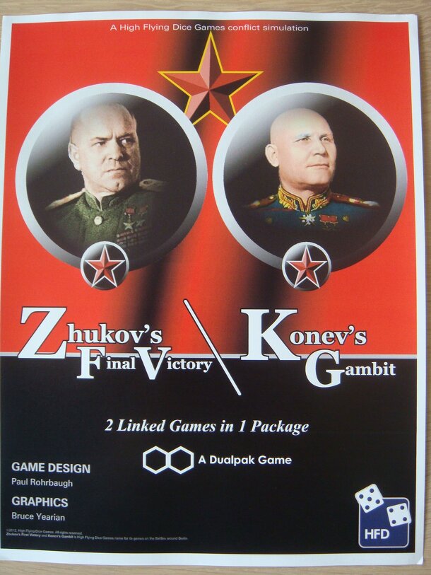 From the publisher's website: Zhukov's Final Victory is a low complexity level, two-player wargame on the battle for the capital of Nazi Germany, Berlin. In mid- April of 1945, Marshall Zhukov's 1st Byelorussian Front was poised and aimed like a dagger at the "Heart of the Fascist Beast" the city of Berlin, capital of Nazi Germany. With thousands of tanks...