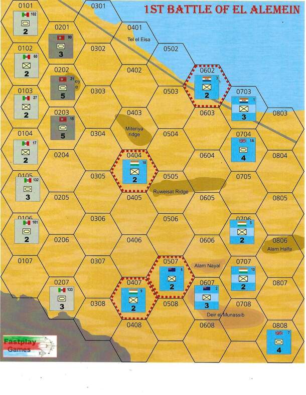 1st El Alamein is a simplified simulation of the mid 1942 battle in the desert of Egypt that marks the high tide of the Afrika Korps in the desert. Although the later battles of Alam Halfa and especially 2nd El Alemein are more famous, it was the Commonwealth’s survival in this July battle that stopped the Afrika Korps and saved Egypt. Advanced and...