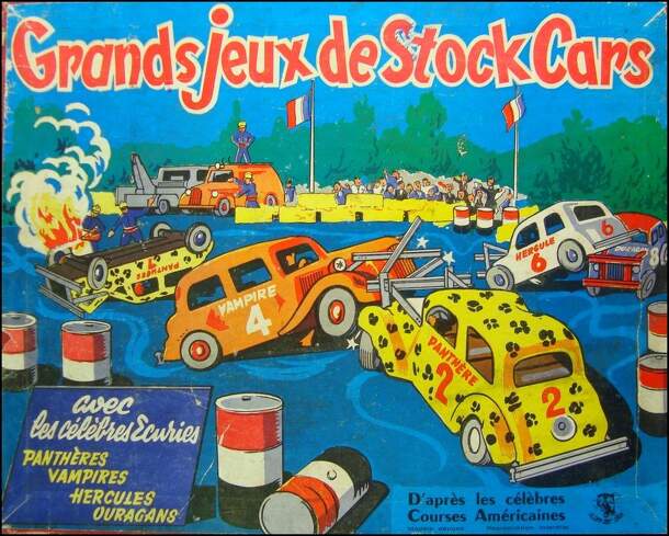 Each player has 2 cars with team named like "Panther", "Hercules", "Hurricane" or "Vampire". The board represents a path with starting areas for each player and squares with many adventures. In his turn player rolls the dice and moves one of its vehicles on the track. There are several actions in many boxes what allows to move faster or eliminate...