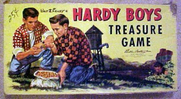 In The Hardy Boys Treasure Game, private detective Fenton Hardy has agreed to let his boys (Frank and Joe - The Hardy Boys) help search for Mr. Applegate's missing doubloons, stolen 10 years ago. In this roll-and-move children's game, players move along a winding path picking up Gold Doubloons which will allow them to acquire extra Bags of Gold at the...