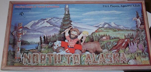 A Roll-and-Move travel boardgame that was apparently released in 1984 as a promotion for Yukon Sam Rest Stops. Up to eight players attempt to successfully navigate the Alaska-Canada Highway from Seattle, Washington to Anchorage, Alaska. The object of the game is to arrive in Anchorage with the most money, which is found through panning for gold, visiting...