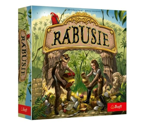 Rabusie ("Robbers") is a card game in which you play the role of treasure hunters competing to find valuable items in the heart of a forgotten jungle. The game is intended for 2-6 players over 7 years of age, and the average playing time is 20 minutes. By playing appropriate cards, robbers try to keep the treasures they have collected so far, steal loot...