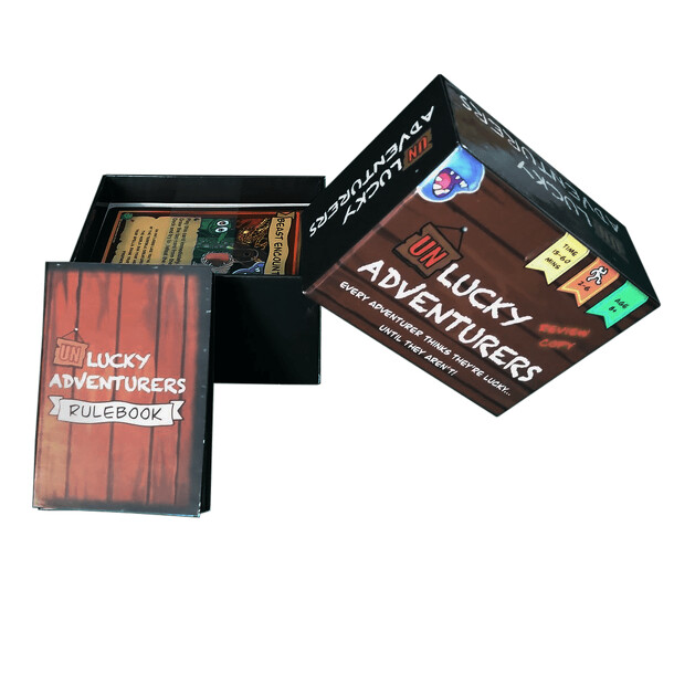 Unlucky Adventurers is a family-friendly card & dice game, where the aim of the game is to eliminate your opponents, while keeping as many cards as possible. For 2-6 players, play against each other or in teams, using both strategy and luck to outwit your fellow players and earn yourself the lofty title of "Reasonably Lucky Adventurer". From perplexing...