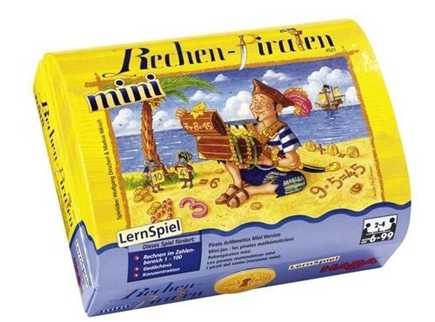 The wild number-pirates once again set off on treasure hunt: Capt. Mathematikus and his parrot Lora sail the Seven Seas. “Treasure island on starboard!“, Lora suddenly caws. Which number treasure will they find today? All players calculate at the same time. Each card displays four arithmetic problems. But only one goes with the operators on the dices. The...
