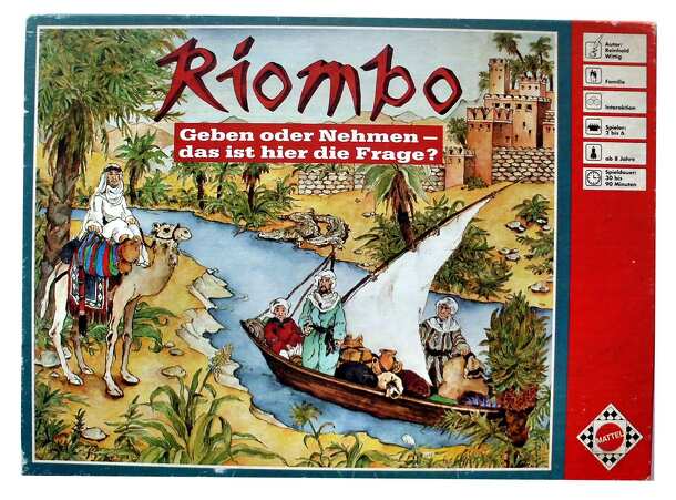Players sail their canoe down the River Ombo trying to get the most 'stick' currency. On a player's turn everyone secretly chooses a number of sticks and then reveals them. The total number of sticks determines the number of spaces the player must move. Many of the spaces make the player lose sticks or gain sticks. At the end of the river a player chooses...
