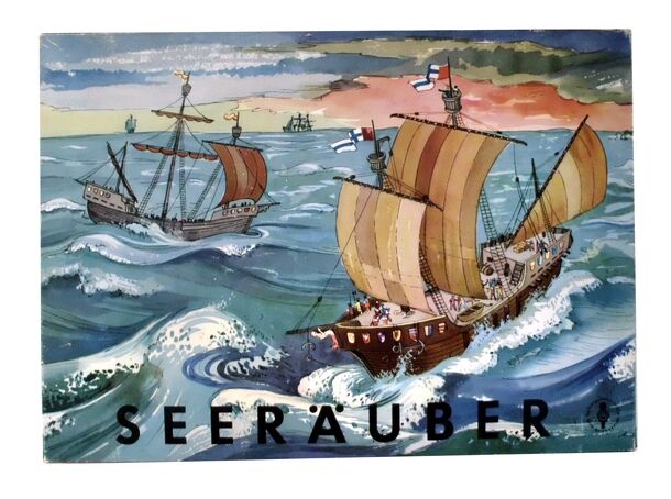 The board shows 4 harbors on the corners and the pirate's island in the middle. One player plays the pirate and the other players take the role of normal seamen. The normal players have a home harbor and 5 ships, which are loaded with 5 different goods. When a ship successfully reaches a foreign harbor, the good is sold and the player collects the income....