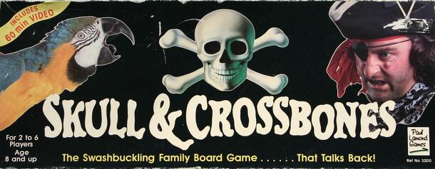 SKULL & CROSSBONES is a family board game playable with or without a video. The players represent pirates who have deserted Captain Skull's crew and are trying to locate and steal his treasure, and escape, before Captain Skull returns, captures them and makes them "walk the plank". Movement is controlled by the use of "move" cards which direct players to...