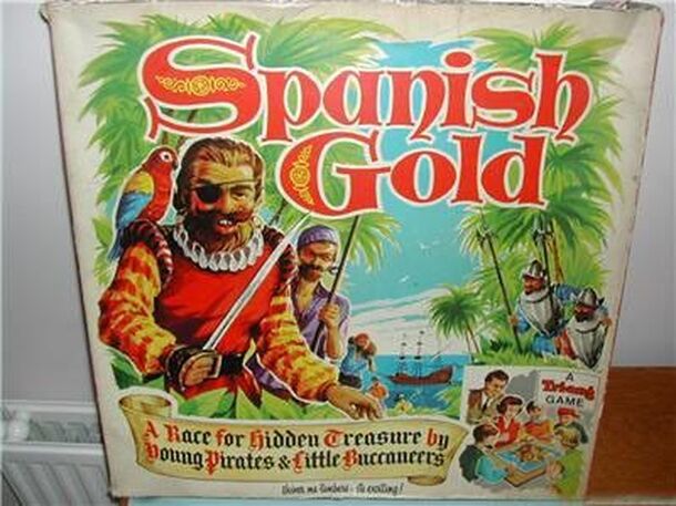 Contents 1 Three - Dimensional Playing Field. 2 Galleon's. 4 Blue Buccaneer's. 4 Red Pirates. 4 Gold Bars. Palm Trees. 2 Dice. 1 Dice Shaker. Rules Are Printed on Inner Box Lid. Players are either Buccaneers or Pirates Gold Bars are placed at the summit on the island and crews Start/Finish at their respective galleons. The routes have hazards such as 'Drop...