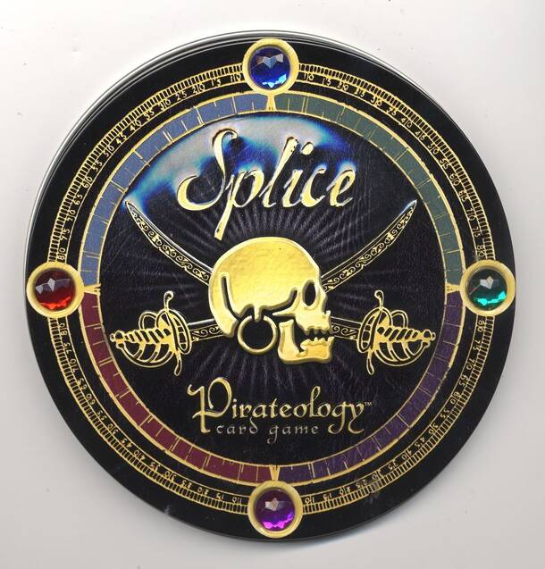 This set building card game comes in a beautiful round tin and has die cut cards. The gems are just thin card stock. From the back of the tin: Choose your Gemstone and battle your opponents to find the missing pieces of your treasure map in this swashbuckling card game. You may be the most notorious pirate around, but beware the Hurricane, Skull and Black...