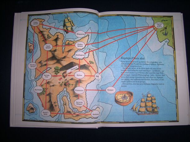 Captain Flint's treasure. 16 cards are dealt with 4 to each player. The player who dealt the cards begins the game by asking any other player for a card. If the player asked has the card he must surrender it. Then the next player takes a turn. The object of the game is to collect 4 cards which are connected on a red line on the map, and which ends at the...
