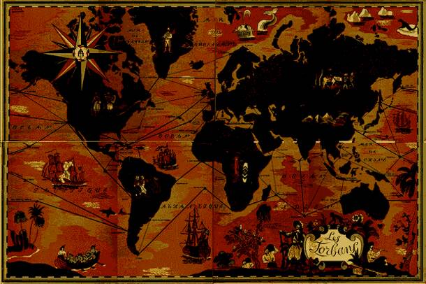 "Forbidden" in English is a pirate game. World map on the game board is drawn by Lucien Boucher (famous illustrator known for his maps and posters in the year 1930/50) Originally intended to be played in two, The game proposes special rules that allow up to 6 players to participate. Game board offers land and sea routes how the painted figurines would...