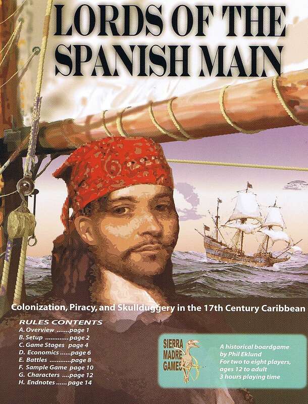 Each player, representing a historical individual in the year 1600, attempts to make his fortune in the Spanish Main. One player is the Marqués de Guadalcazar, the Spanish governor of Española. He is not averse to dealing in contraband goods with the merchant fleets of the other players. During each yearly turn, a player bids upon properties and slaves...