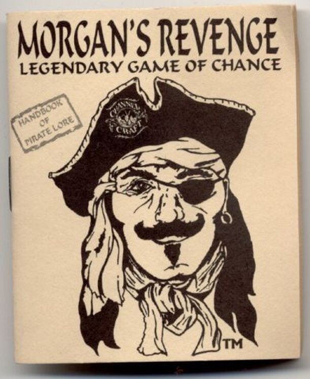 From the Web Site: "MORGAN'S REVENGE comes complete with authentic replicas of gold doubloons and silver Pieces of Eight with a 16 page handbook of Pirate Lore, and rules to this brass top game of chance. All the game pieces fit in a neat little printed bag. " From the "Handbook Of Pirate Lore": The Rules - The top has six sides. The marks generally mean:...