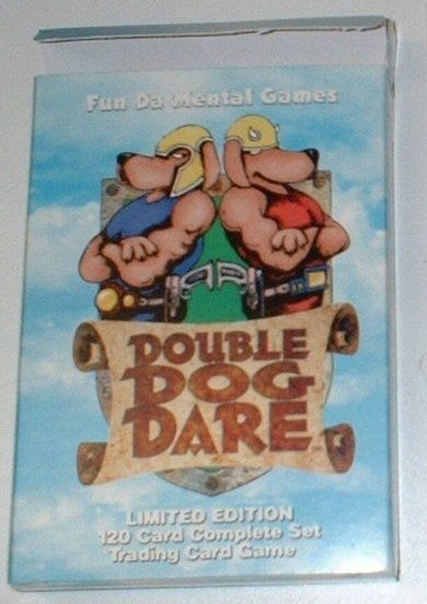Double Dog Dare is a card game in which players draw and play cards to summon fantasy monsters to fight each other. The game's combat mechanic is based on an elemental "rock-scissors-paper" cycle: fire trumps earth, which trumps air, and air is superior to water, which overwhelms fire. Two monsters of equal power would resolve the battle based on their...