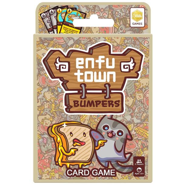 Description from the publisher: Enfutown Bumpers is a 2 player strategy card game with a fun art style you can't put away! It's got a lot of elements for outstanding gameplay. Board positioning Outwitting your opponent Hidden Information Bump Battles! It's reminiscent of games like Stratego and Poker. Units move face down on the 3x5 board and after bump...