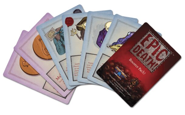 From Epic Death! Kickstarter Page: The Bonus Pack adds a whole new element to your game: Events! These testing trials will appear early on in your adventures and will need to be dealt with quickly if you're to become truly Epic heroes. The Booster Pack also comes with two exclusive Fate cards: the Nerf Bat and Potion of Imba... perfect if you're looking to...