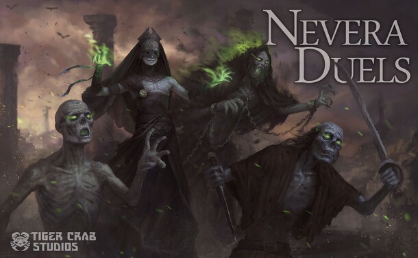 Description from the publisher: Nevera Duels is a necromancy themed deck construction game. Players construct a deck of 36 minion cards before the game, they may then play minion cards face down to use as resources to summon minions and activate their abilities. The first player to destroy eight of their opponent's minion cards is victorious. The game...