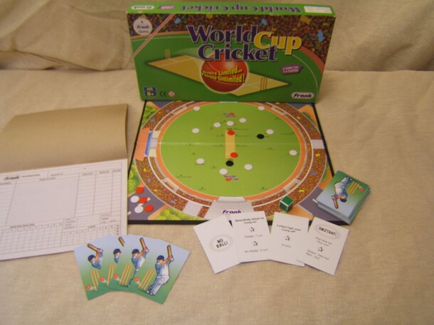 Players represent the batting and fielding sides in a game of limited overs cricket. The fielding player sets up his field using white counters to depict his fielders. Counters also represent the batsman and umpires, though these are static. For each ball in an over, a card is drawn from the deck to represent the outcome of that bowl (no ball, howzat...