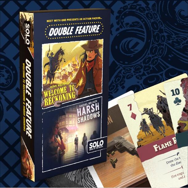 This is a Solo Game of the Month edition featuring both Harsh Shadows and Welcome to Reckoning that were first published by Wonderspell. Harsh Shadows is a solitaire game of espionage. To set up, place nine location cards in a 3x3 grid, then place discovery cards under each location. Place three file cards near the locations, then place case cards under...