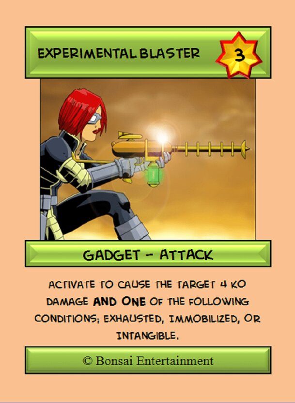 The Gadget Archetype adds the tricky and resourceful Gadget cards to the IP ECG game. The Gadget Archetype is great at evading conditions and ridding itself of Limitations placed on it by others. New cards include; Experimental Blaster Utility Belt Med Bot Inspiration Power Failure and many more! 3 each of 20 new cards, a fully playable deck! Remember that...
