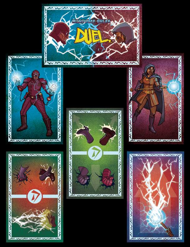 From the publisher: In this 2-player game, the Attacker controls the field of play via Momentum, selecting one of three attack types aimed at either the upper or lower section of an opponent's character. Defenders can stop the momentum and become the attacker by successfully predicting the incoming attack and accurately selecting the correct block type and...