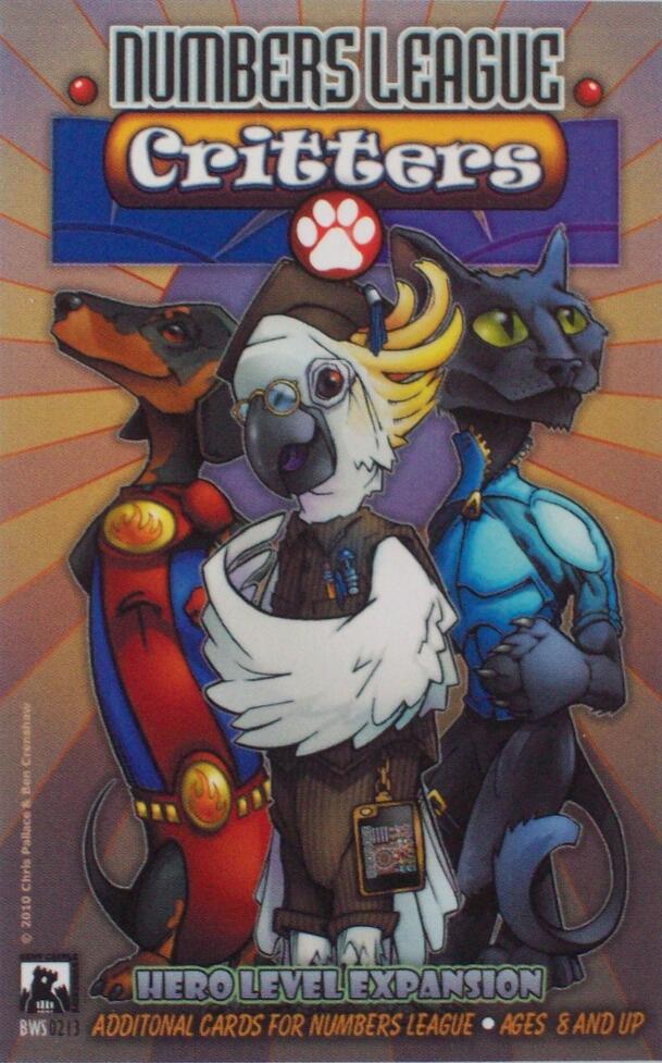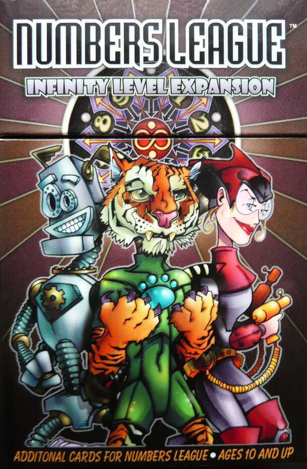 From Bent Castle Workshop webpage: "A new breed of villainy descends on Infinity city. To defeat it you will need more skill than ever before. Armed with division and decimals see if you are up to the challenge. The 60 card expansion deck includes Rules, 24 new villains (12 cards), 11 new superheroes (33 cards), and 15 new weapons." Expansion for Numbers...