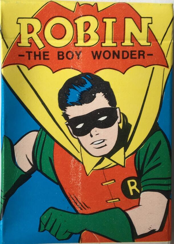 Unlike the 1978 Whitman trick-taking card game of the same title, this 1977 Russell game is more like rummy, with players aiming for three or more of a kind or in sequence. The deck has only 40 cards, four each of ten different illustrations numbered 1-10. The English rules are printed on the back of the box, but a card with French rules is enclosed...