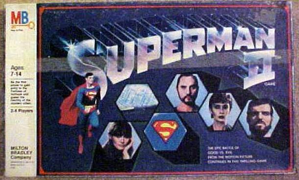 Roll-and-Move game where each player controls a superman pawn. Object of the Game: Be the first player to bring your Villain to Jail and disarm his Secret Weapon at the Crime Lab. Each player moves around the board uncovering question mark tokens in the hopes of finding the appropriate villain. Once found, they put the villain into the holder on their pawn...