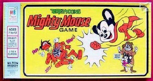 Thirteen cards are placed on designated areas on the game board’s track. Each player, in turn, rolls the die and moves one’s pawn along the track. Whenever a player’s pawn lands on a card, the player takes the card. Most cards have a value of 1, 2, 3 or 4. The object of the game is to collect cards totaling twelve. Cards that have a drawing of Mighty...