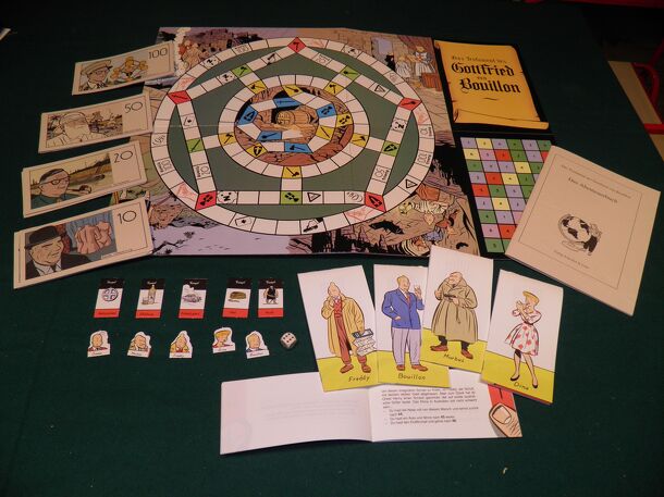An adventure game where players try to find a legendary wine barrel in the ruins of a castle. The game is based on the adventure comic with the same name from Yves Chaland. Each player represents a character from that comic. On your turn, you roll the dice and move that number of spaces. The space you land is either blank (and the next player takes his...