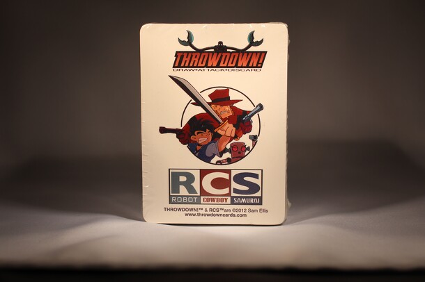 THROWDOWN! is a turn based card game that uses the Draw-Attack-Discard system or D.A.D.s. During the game you will have a character, a deck, and a discard pile. First you need at least 2 or more people to play and each person will need to have their own character card (a Robot, a Cowboy, or a Samurai), and deck, (the deck contains only 50 cards and is full...