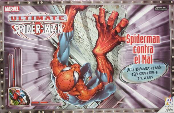 Spiderman against evil was a boardgame edited by Spanish company Popular de Juguetes. The players move on a board featuring New York, each one trying to reach a goal (providing by a card) and a Superpower (depending on the character they play). They move throwing a dice and choosing the direction (with certain modifiers explained in the rules). The winning...