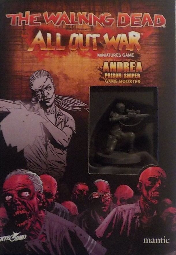 Description from the publisher: Lori Grimes lived with the guilt of having left her husband, Rick, in a coma back home in Cynthiana. Accompanied by Shane, Lori and her son Carl journeyed to Atlanta, but what they found was a city teaming with the dead. This booster pack contains three unique, collectible miniatures allowing you to add Lori and the bandit...