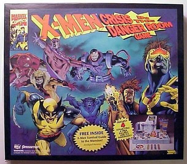 X-men: Crisis in the Danger Room is a game based on Marvel's X-men franchise. It comes with a three dimensional cardboard game board and four plastic x-men figures similar to those included in the X-men Alert game. (These are newer costumed models though, the models are Cyclops, Wolverine, Gambit and Beast) Players spin a 4 colored disk to see where they...