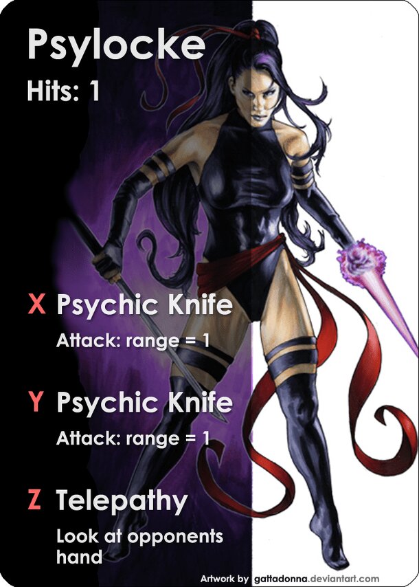 "Board & card game for 2 players. Battle between Mutants & Sentinel Robots. Takes place in the X-Men Universe. Each figure (unit) represents a Mutant or Robot. Victory: Destroy all opposing Units." The X-Men get eight Mutants with a maximum Hit point total of 16. The Sentinel Robots and eighteen named Mutants are described by hit points, abilities, and...