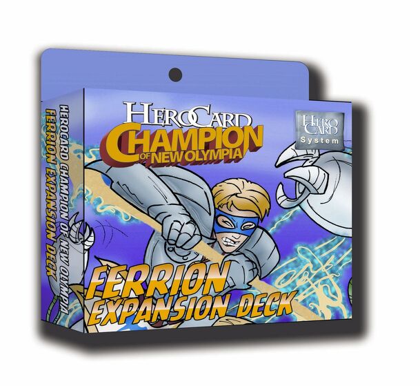 From the back of the box: FERRION EXPANSION DECK Ferrion crushes evil with techno armor, advanced weapons, and maverick piloting skills. Ferrion is a HeroCard Expansion Deck for HeroCard Champion of New Olympia, the ultimate fight for glory. Ferrion can compete in any HeroCard game or be combined with other decks to create a customized character. CONTENTS...