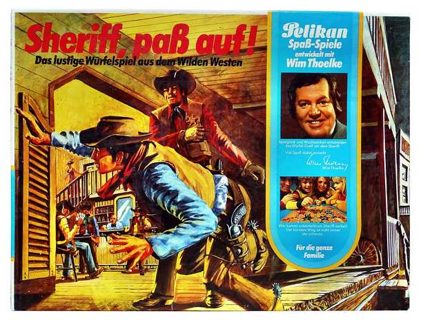 This is a game for ages 5 and up. The box contains a board, 1 die, 24 wooden pawns (in 6 different colors) and 1 sheriff. The board contains a star shaped plan. The sheriff is placed in the middle of the board. The start fields for the pawns are on the edge of the board. Aim of the game is to get your pawns as fast as possible past the sheriff to their...