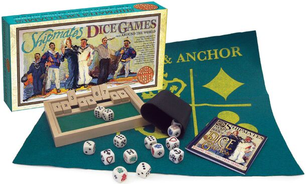 Ship, Captain, and Crew is a public domain dice game. Each player gets three throws with 5 dice. First he has to get a 6 (ship), a 5 (captain), and a 4 (crew), in that order. As he throws each of these special numbers, those dice are removed from play. Once a player has gotten his ship, captain, and crew, his score is the value shown on the remaining two...