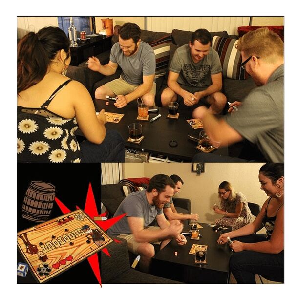 A fun and simple Western themed dice tabletop game, meant for 2 players ages 8 and up, that can be played anytime and anywhere. Each player starts out with one bullet (red or blue dice) in their chamber. Each dice has a barrel, bullet, BANG. Each roll scores. For instance if Red rolls a barrel and blue rolls a bullet, blue scores as red is "hiding" in the...
