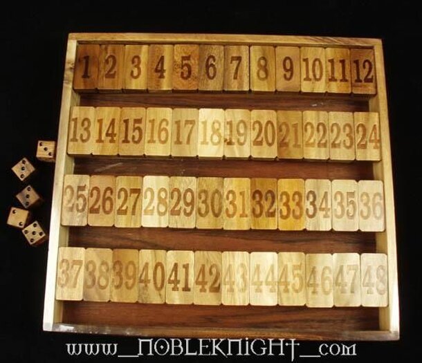 A math skills and luck game for any number of players. There is a 48 numbers instead of 9-12 numbers. The box can be used to play 4 versions of Shut Box: 1-9 using just addition - pre-K to grade 2 (ages 4+) 1-12 using addition multiplication - grades 3 to 5 (ages 9+) 1-24 using addition & multiplication with simple complex equations - grades 4 to 7 (ages...