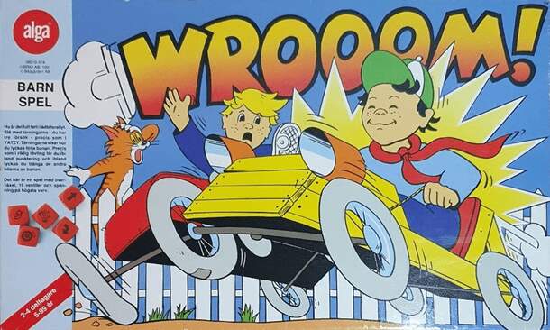 In this simple, Yahtzee-like game the players are racing soapbox cars. You shall combine your dice that you have just thrown in order to fit the path ahead of you. Push your fellow players out of the track if you can. If you blow a tire you may not move. First car that crosses the finish line wins. The game can be played by children about the age of 5. The...
